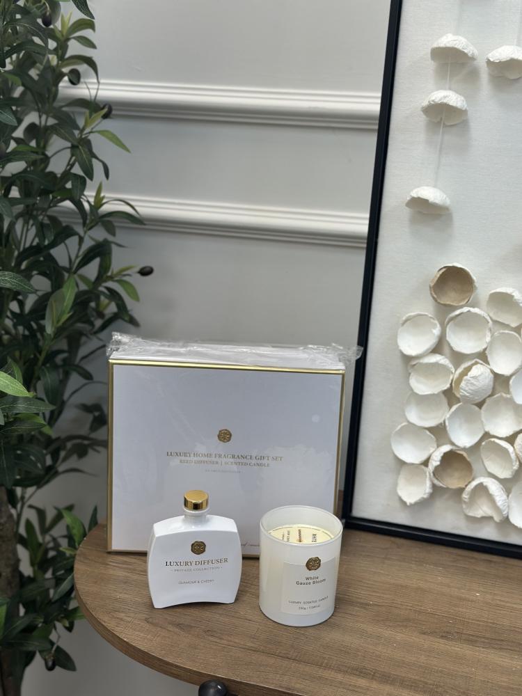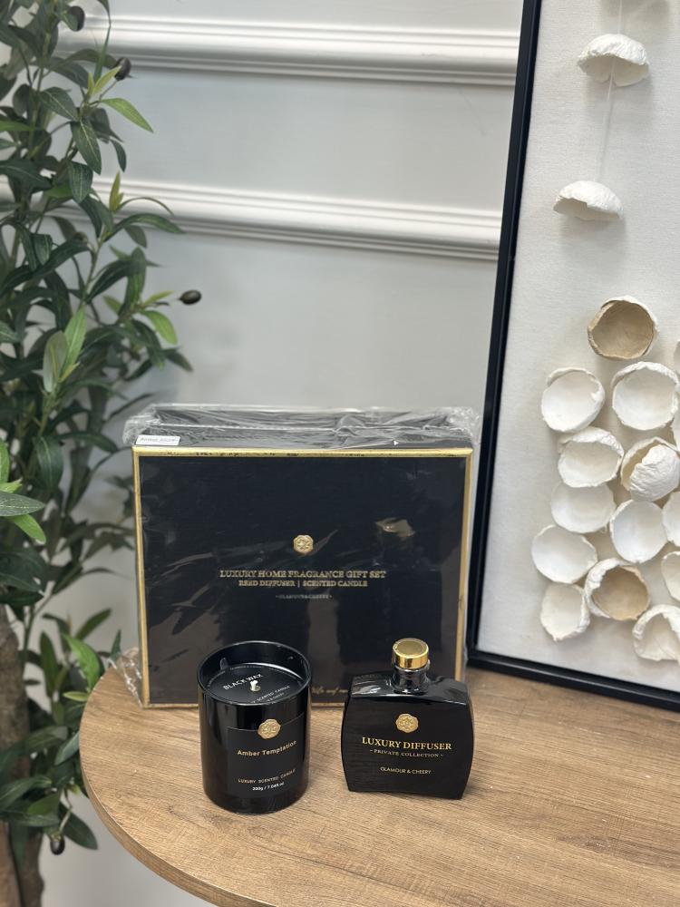 طقم فواحة معطره مع اعواد وشمعة معطره رائحة الابيض عباره عن ورد وياسمين فواح. الطقم الاسود عباره عن العنبر والمسك.
