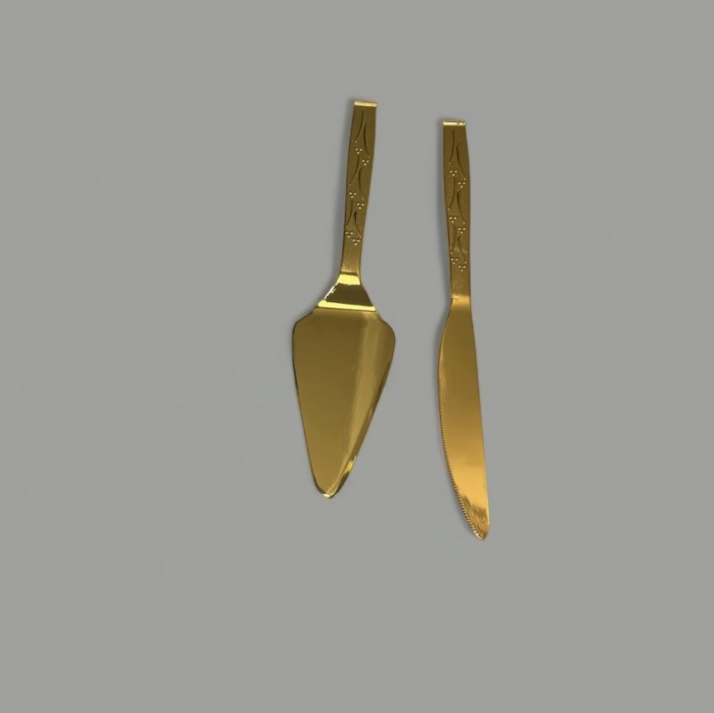 طقم قطاعة كيك ذهبي بنقشة انيقه