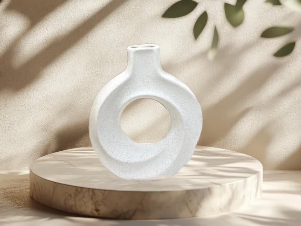 فازة سيراميك ابيض دائري
