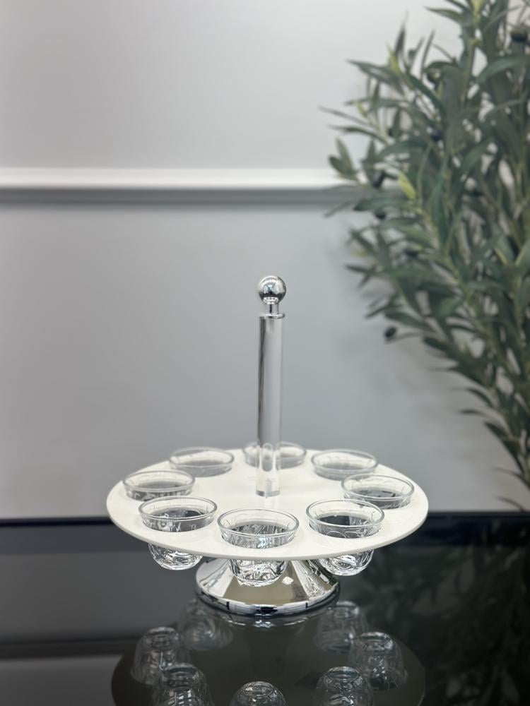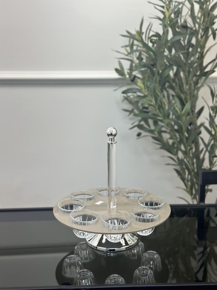 طقم 6 صحون زجاج باستاند فضي