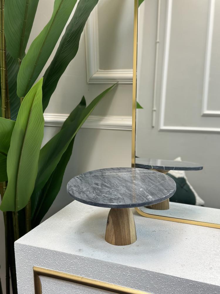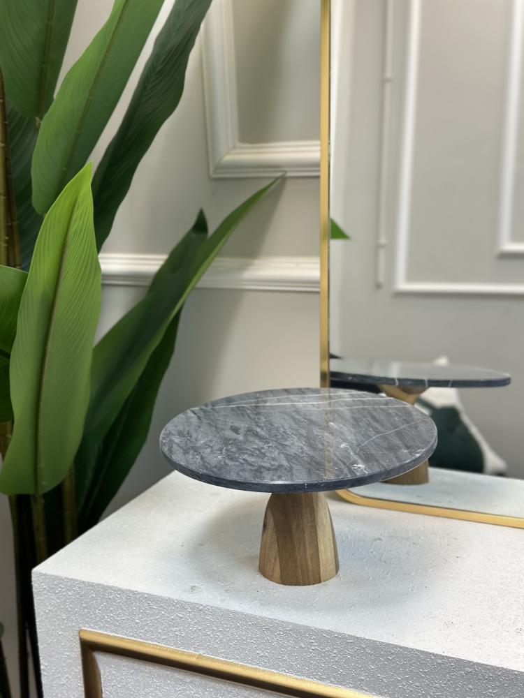 صحن تقديم رخام بقاعدة خشب