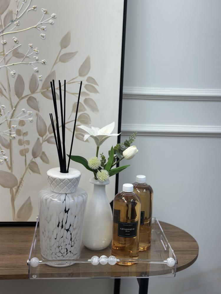 صُمم هذا المعطر ليحول منزلك إلى واحة من الهدوء والانتعاش. فازة زجاجية أنيقة تحتوي على مزيج من الزيوت العطرية الفاخرة التي تنتشر في الأجواء بفضل الأعواد الخشبية الطبيعية.