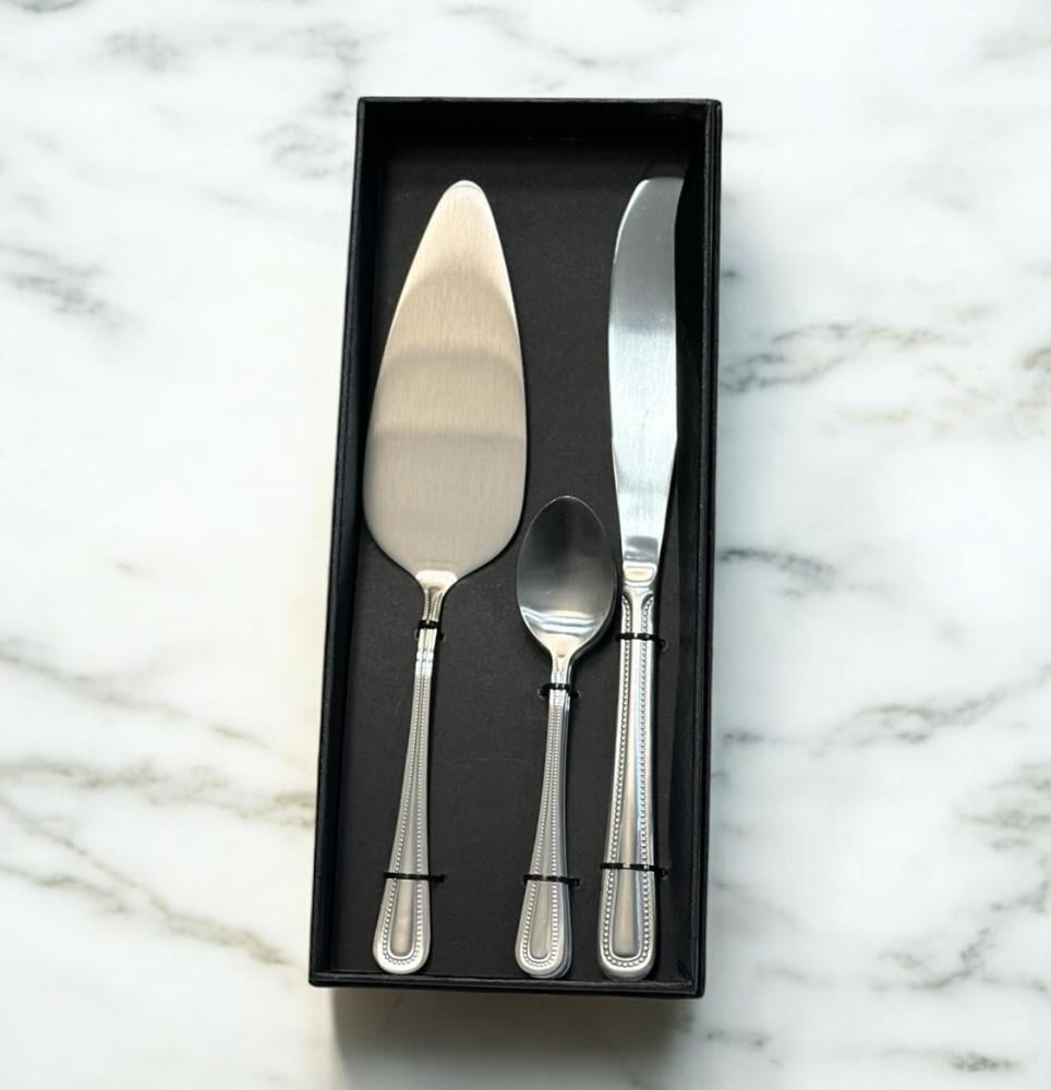 بكج طقم قطاعة كيك فضي مع 6ملاعق حلا